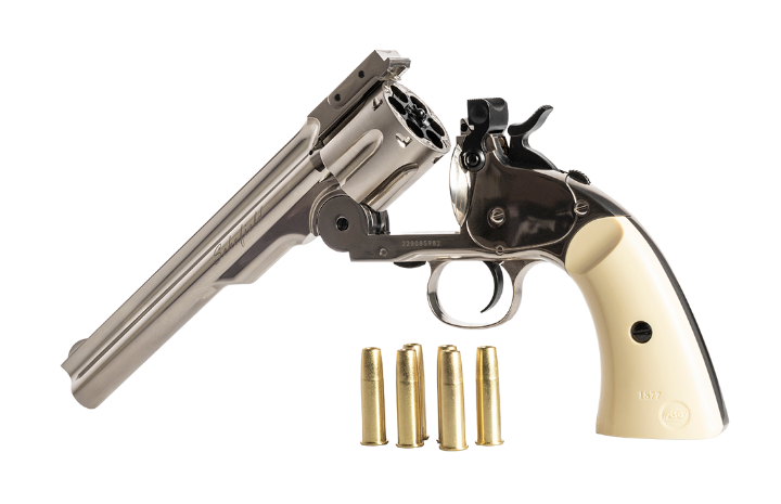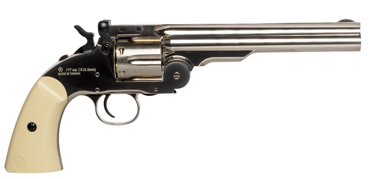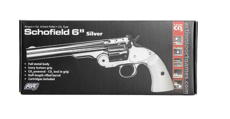 Главная → Купить по низкой цене → Пневматические пистолеты → ASG (Дания) → Пневматический револьвер ASG Schofield-6 Silver (под пули)