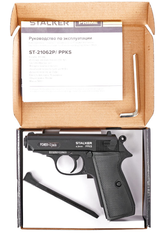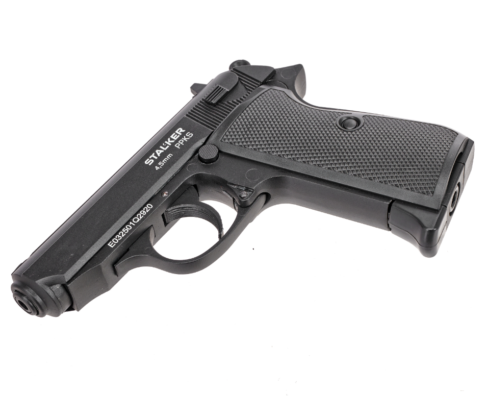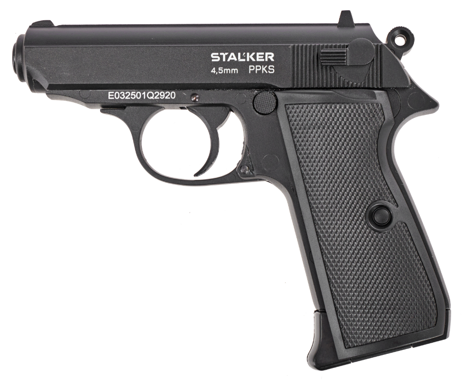 Пистолет пневматический Stalker PPKS - пневматическая копия легендарного пистолета Walther PPK/S. Оснащен системой блоу-бэк (имитация отдачи при стрельбе). Корпус полностью выполнен из металла Комплектация пистолета Stalker SPPK: инструкция на русском языке, ключ-шестигранник для установки баллончика СО2