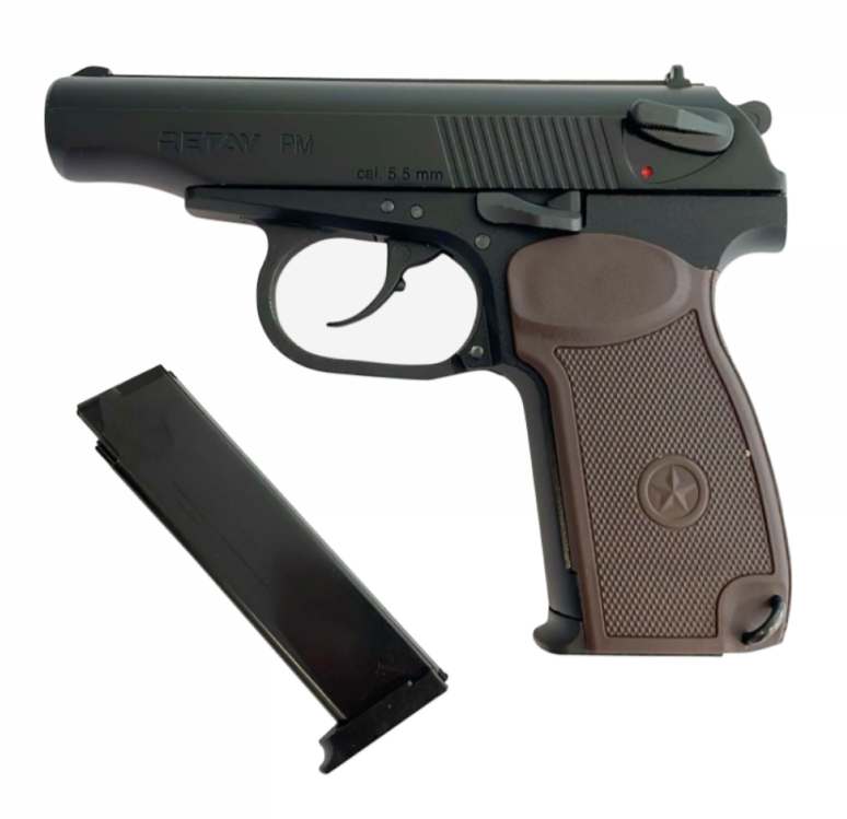 Ожидаем поступление в октябре 2025 - и сразу свяжемся с вами, если вы оформили предзаказ. Чтобы оформить предзаказ - добавьте пистолет в корзину и оформите заказ. СХП охолощенный сигнальный пистолет Retay ПМ Макаров, под патрон 10ТК (калибр 5,5 мм). Корпус пистолета из оружейного сплава Zamak Сигнальный пистолет RETAY PM можно купить свободно с 18 лет. Макаров от Retay сертифицирован как сигнальный пистолет калибра 5,5 мм (согласно закону об оружии, сигнальное оружие до 6 мм СВОБОДНО ПРИОБРЕТАЕТСЯ гражданами с 18 лет), т.е. при его приобретении НЕ ТРЕБУЕТСЯ УВЕДОМЛЯТЬ Росгвардию! Пистолет Retay PM - новинка осени 2025 года. У него полностью металлический корпус и очень привлекательная цена Для Екатеринбурга: