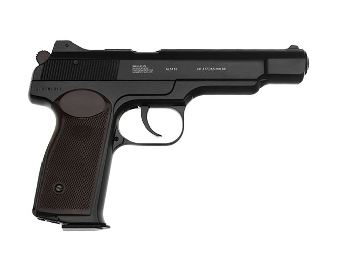 Пистолет пневматический Gletcher GLST51. Второе поколение модели. Для изготовления металлических деталей кожуха затвора и корпуса пистолета используется оборудование следующего поколения. Это повысило качество литья, позволило сделать стыки деталей менее заметными. Детали ударно-спускового механизма пистолетов теперь производятся из качественно другого, более долговечного сплава. Пользователи смогут оценить более плавный спуск пистолета и увеличившийся благодаря изменениям срок службы. Пистолет пневматический Gletcher GLST51 (Стечкин):