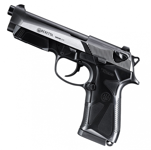 Пневматическая Beretta 90 TWO - это облегченный вариант легендарной Beretta 92 FS. Удобное сочетание пластика и стали позволяет стрелять с пистолета не напрягая рук. Ударно-спусковой механизм двойного действия дает возможность стрельбы как самовзводом так и с предварительным взводом курка, такая система позволят тренироваться с пневматикой даже самым маленьким стрелкам. Beretta 90TWO имеет металлическую обойму, в которой расположен боевой клапан и вмещается 21 шарик ВВ. Подвижная затворная рама из металла добавляет реалистичности при обращении с пистолетом. Для Екатеринбурга: