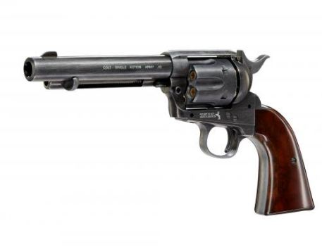 В нашем магазине вы можете купить пневматический револьвер Umarex Colt Single Action Army SAA .45-5.5". Версия пистолета под шарики ВВ Варианты цветов (нужный цвет можно выбрать в окошке справа от цены): Пистолет пневматический Colt SAA 45 BB antique - античный, состаренный Пистолет пневматический Colt SAA 45 BB Blue - с синим отливом Пистолет пневматический Colt SAA 45 BB nickel - никелированный Поклонники развлекательной стрельбы из пневматических пистолетов и револьверов особенно оценят сходство с легендарным образцом боевого оружия, прототипом этого пневматического револьвера послужила знаменитая модель компании Кольт, «покоритель Запада», известная больше как «Миротворец» разработанная в 1872. Для Екатеринбурга: