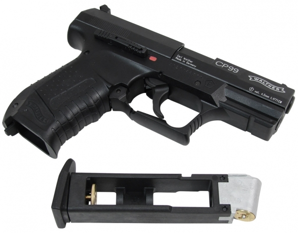 Пневматический пистолет Umarex Walther CP99 - практически точная копия боевого пистолета Walther P-99. Облегченный ударопрочный пластиковый корпус. Как и вся немецкая пневматика, он обладает нарезным стволом из нержавеющей стали, обеспечивающим высокую точность стрельбы. Для Екатеринбурга:
