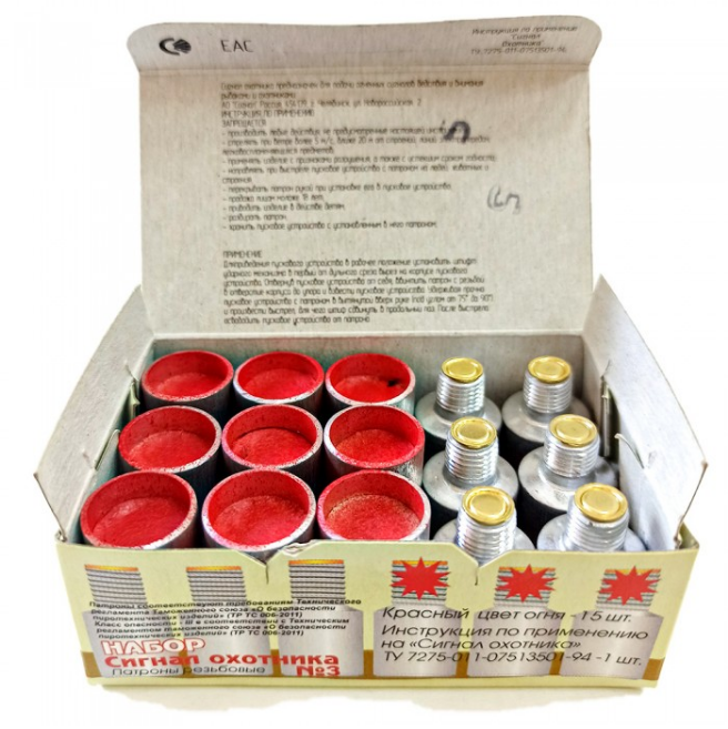 Сигнал охотника набор №3, красный. В упаковке 15 ракет красного цвета. Производитель - АО Сигнал г Челябинск Характеристики: